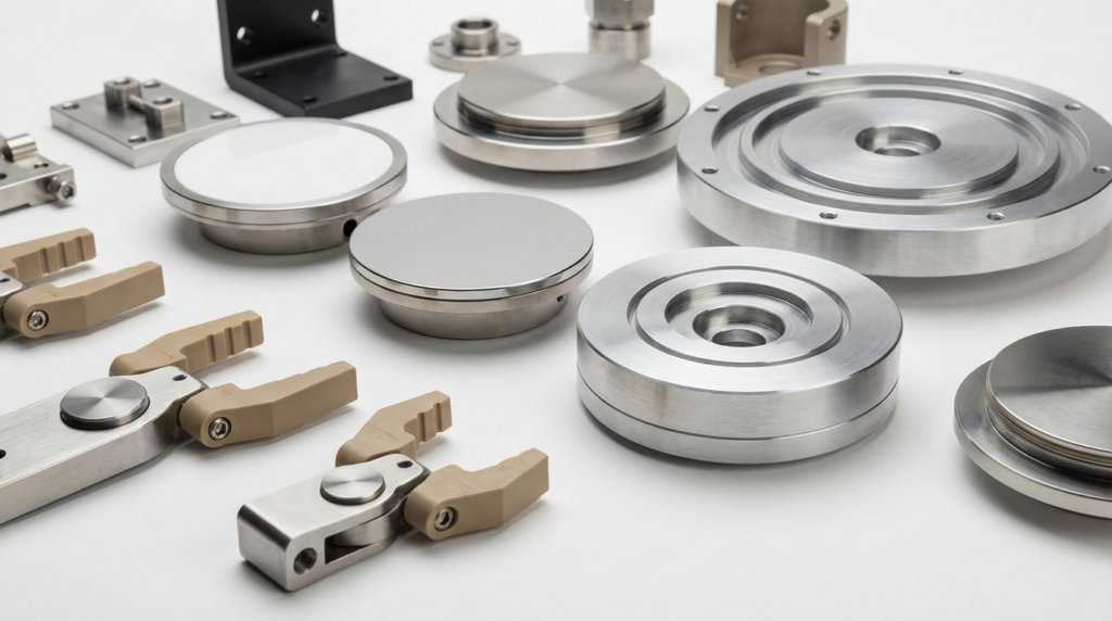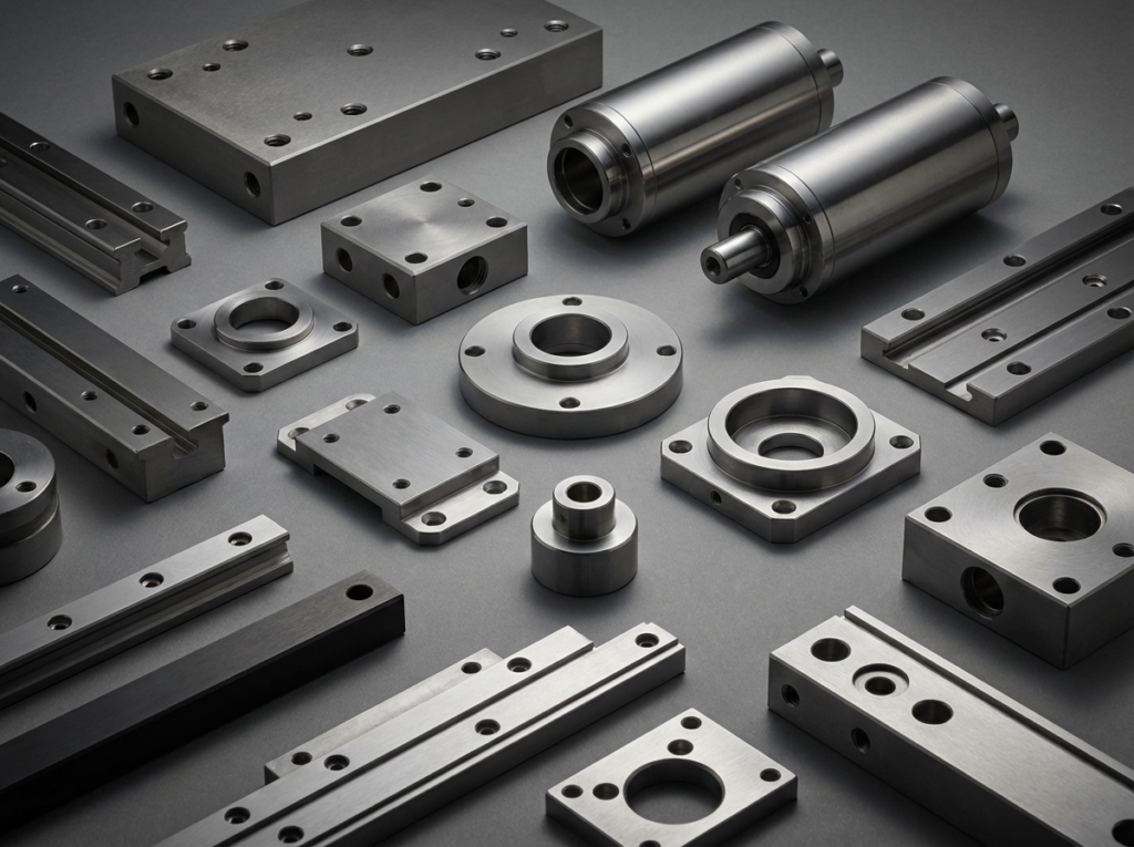 Typical components we machine for fabs, equipment OEMs, and metrology systems.